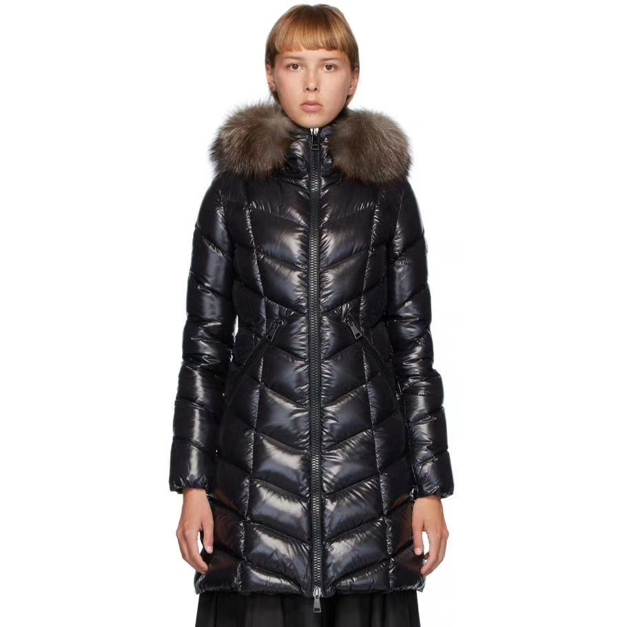 High-quality Moncler Fulmarus long women's down jacket with fox fur collar.