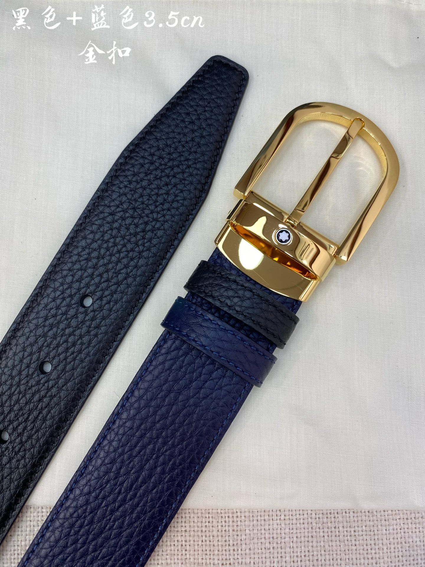 Montblanc men's leather belt, 3.5cm width, high-quality pin buckle, adjustable length.