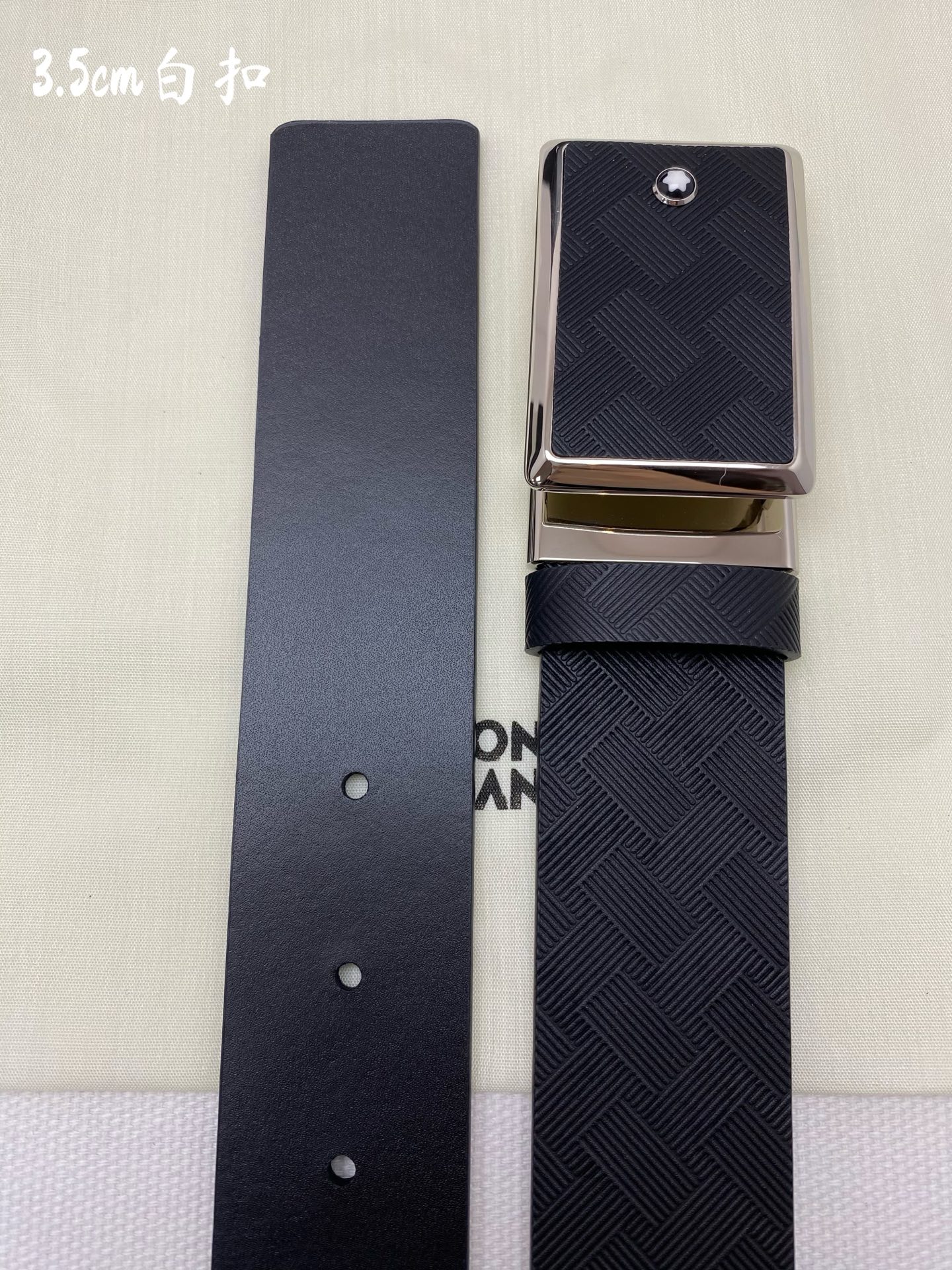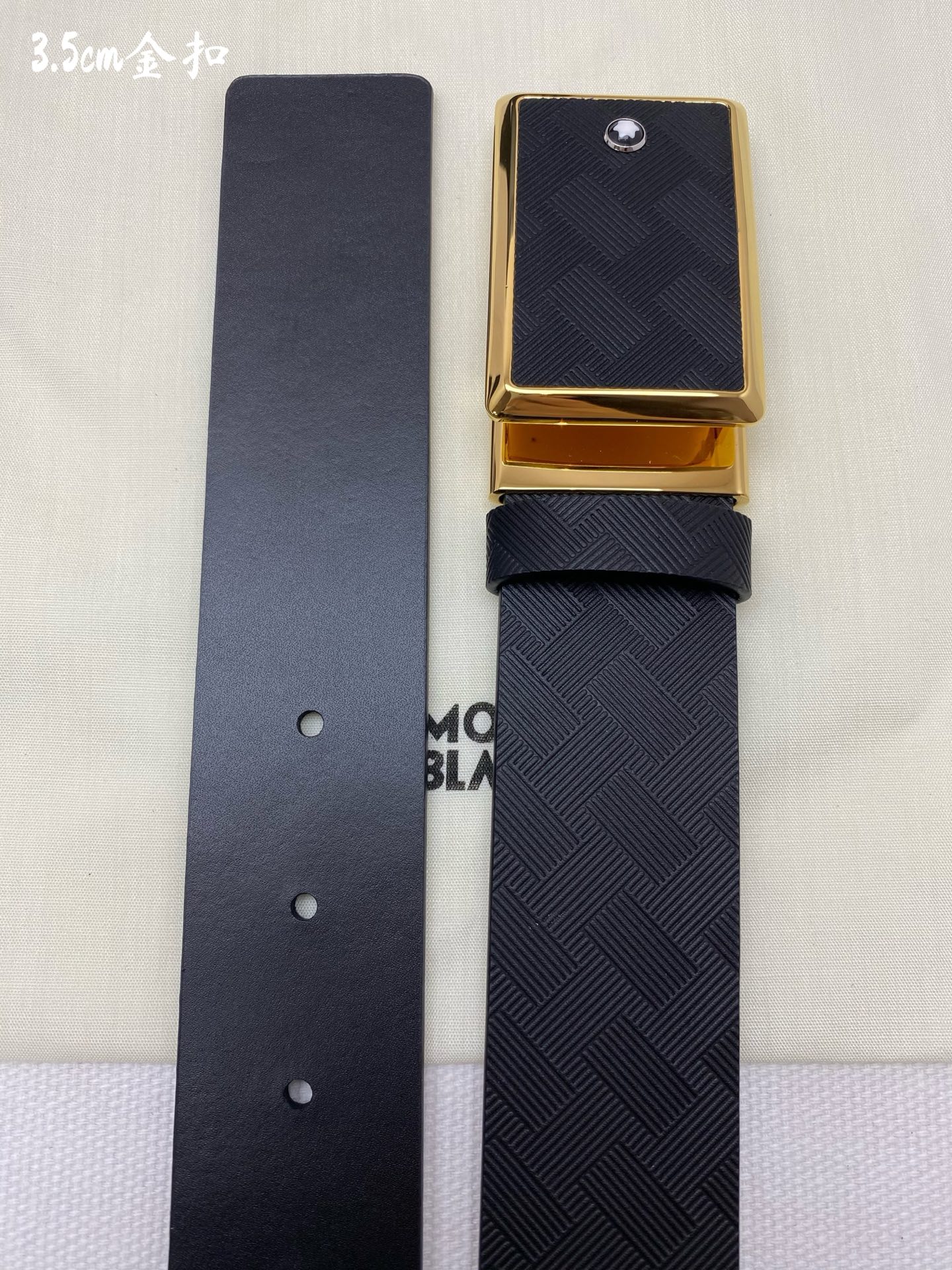 Montblanc 3.5cm wide genuine leather belt with pin buckle, business casual style.
