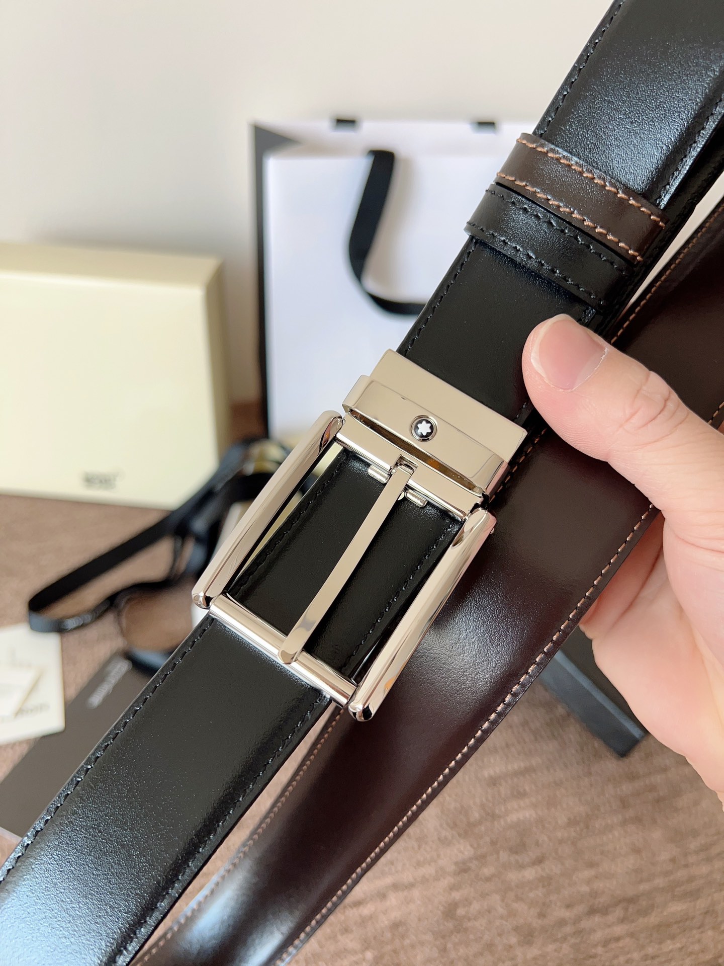 Montblanc double-sided original leather, this buckle-ad …
