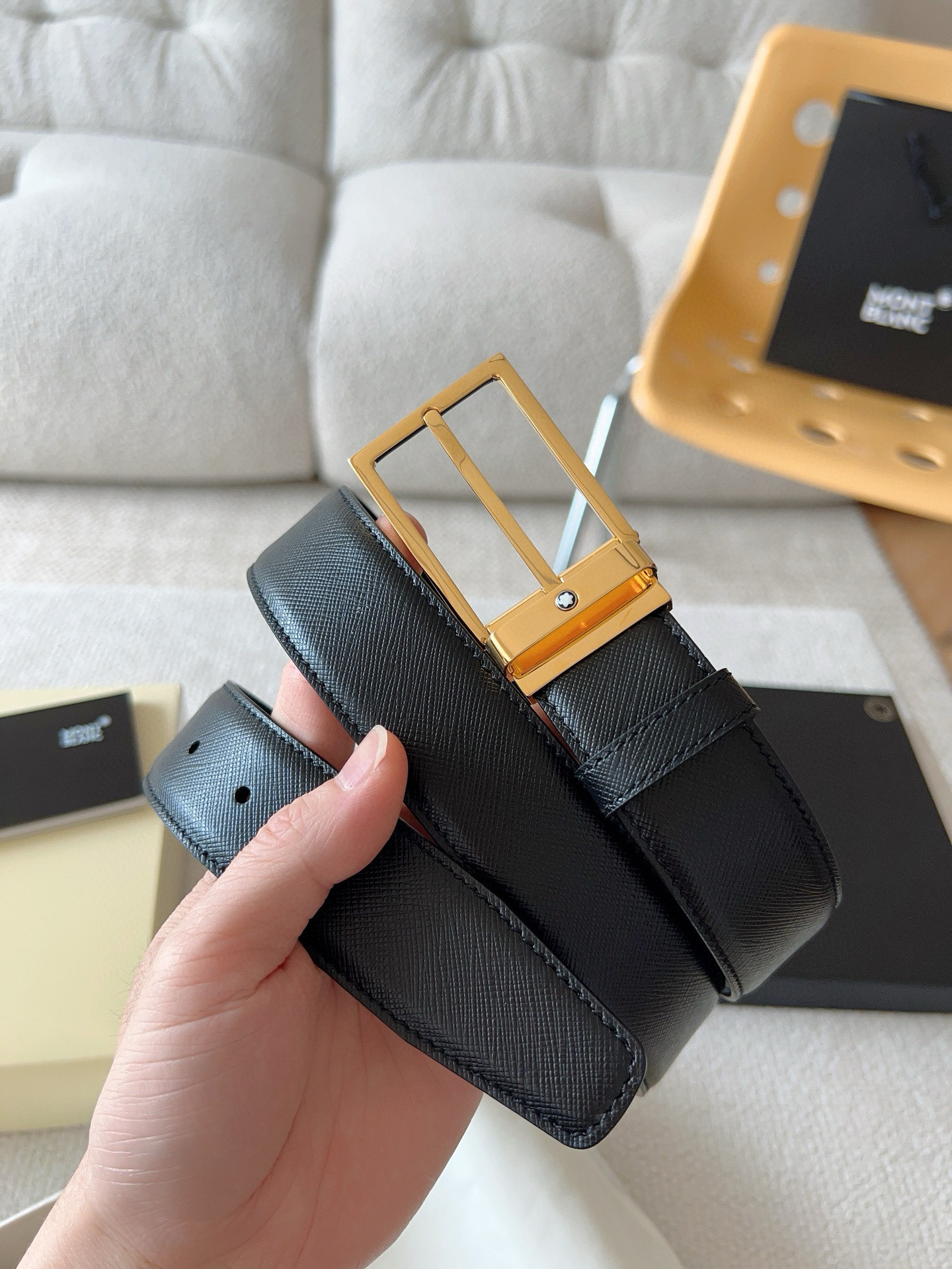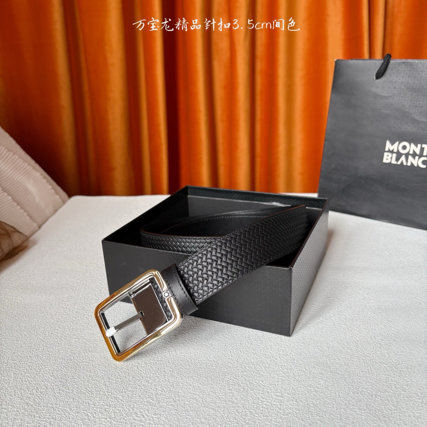 Montblanc 3.5cm wide genuine leather belt with pin buckle, business casual style.
