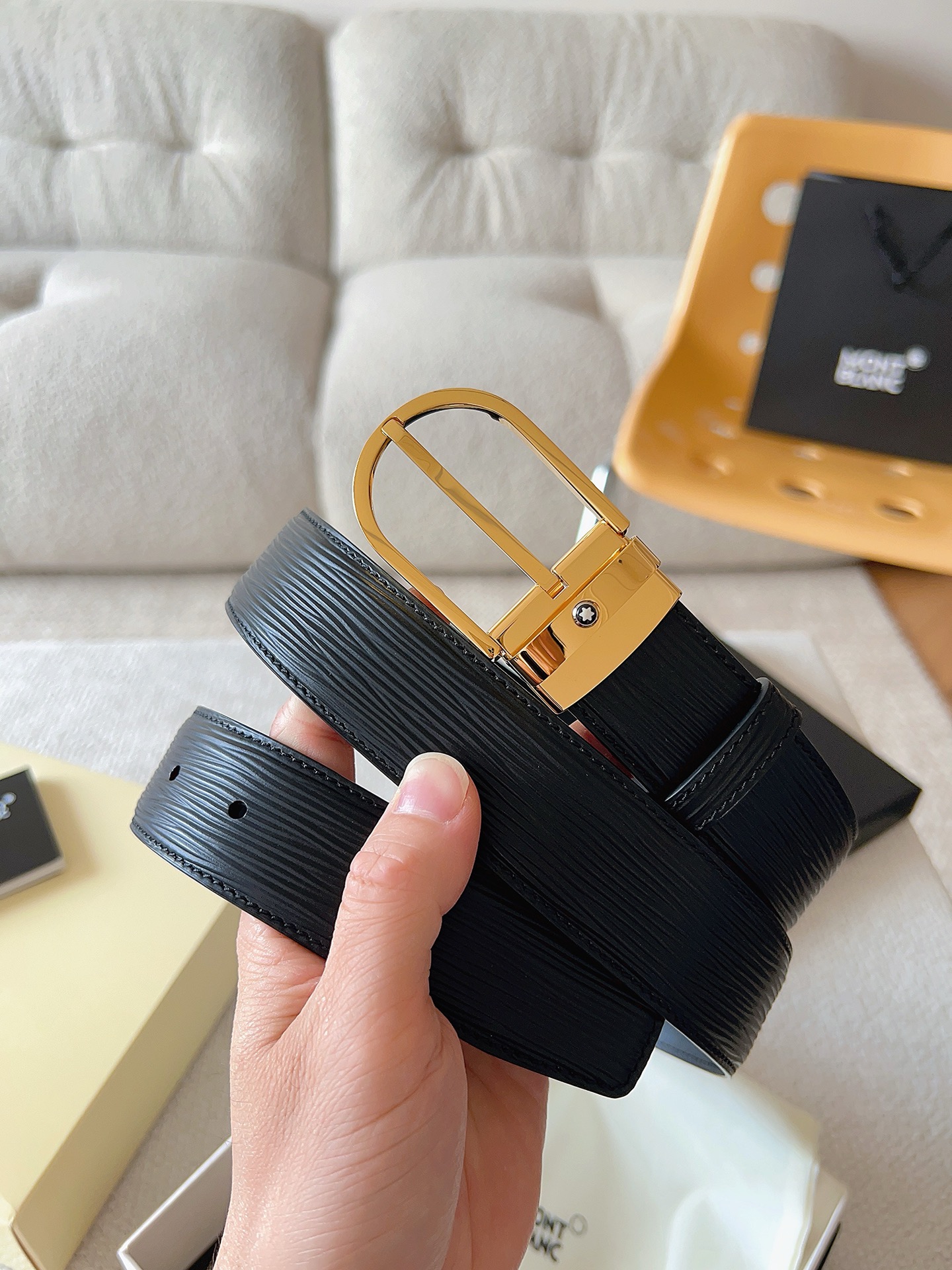 Montblanc new horseshoe buckle belt with 3D浮雕,优质皮革, adjustable length, double-sided. 35mm width.