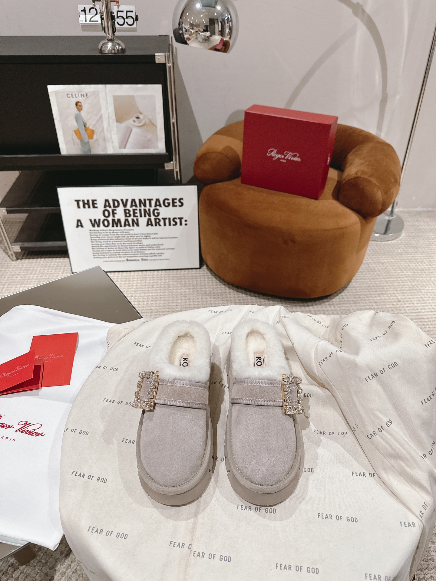 Roger VI RV snow slippers available. Genuine materials: imported leather, fur lining, original mold hardware. Sizes 35-40.