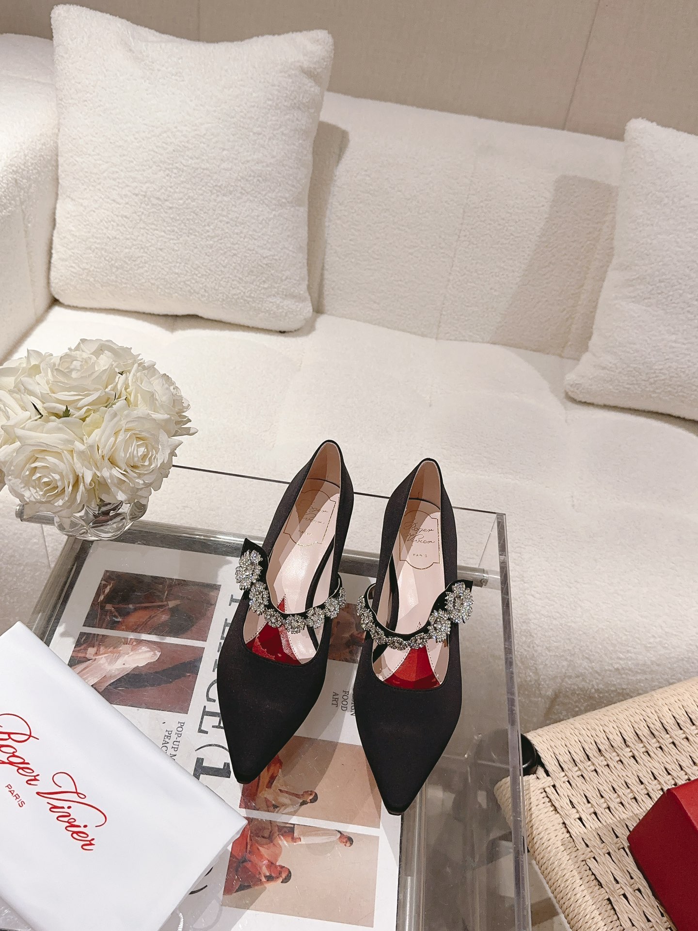 Roger Vivier 2023 SS silk pointed shoes with crystal buckle. Available in flat, 3.5cm low heel, 8.5cm high heel. Sizes 35-39, custom orders for 34 & 40.