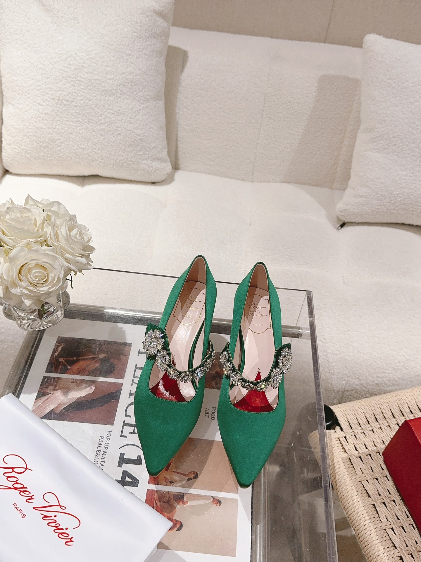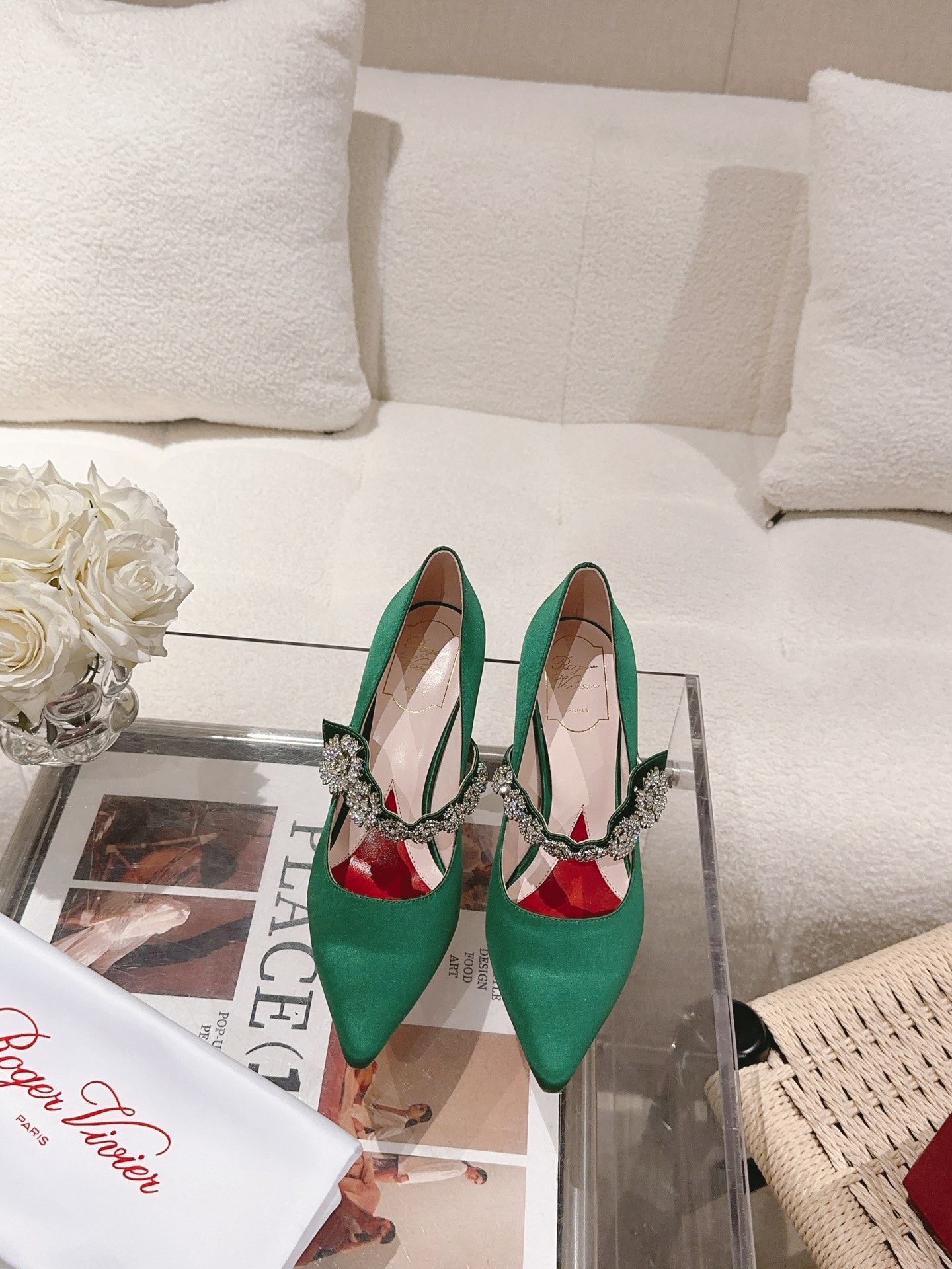 Roger Vivier 2023 SS silk pointed shoes with crystal buckle. Available in flat, 3.5cm low heel, 8.5cm high heel. Sizes 35-39.