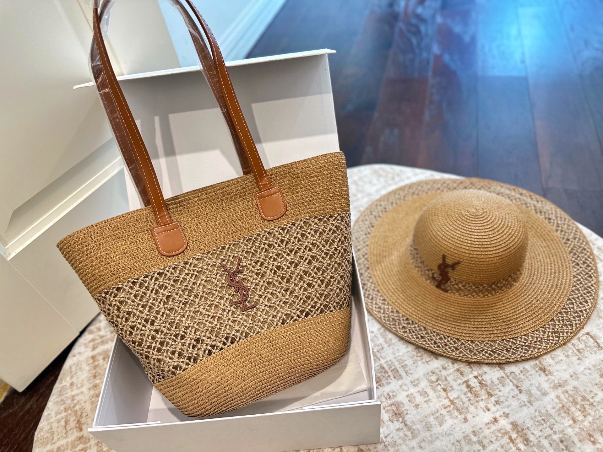 YSL straw hat and bag set, 28cm. Summer must-have, selling fast!