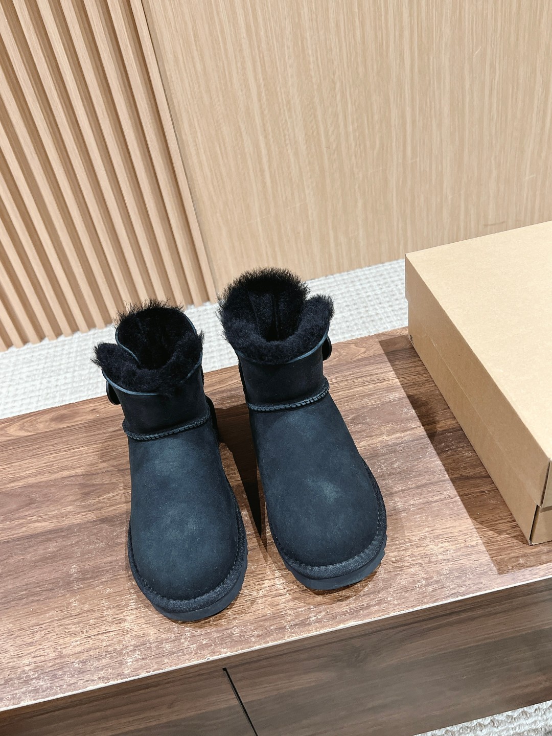 UGG 3352 Wooden Buckle Snow Boots. Made of premium sheepskin, soft and warm. Lightweight EVA sole for comfort. Wooden buckle and elastic closure design. Sizes 35-39.