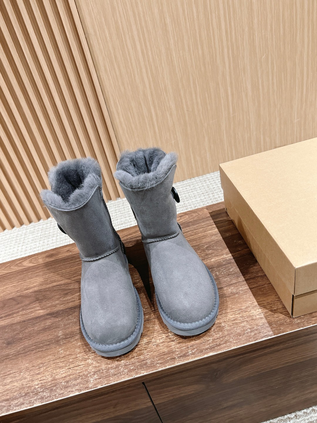 UGG 5803 classic wooden buckle mid-calf snow boots. Premium waterproof and stain-resistant sheepskin. Soft, wear-resistant sole. Sizes 35-39.