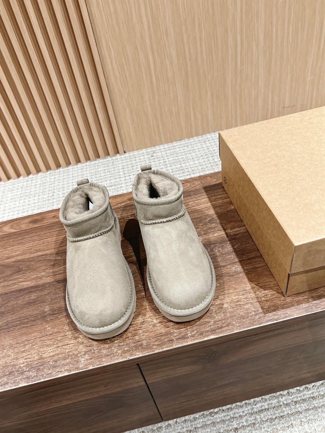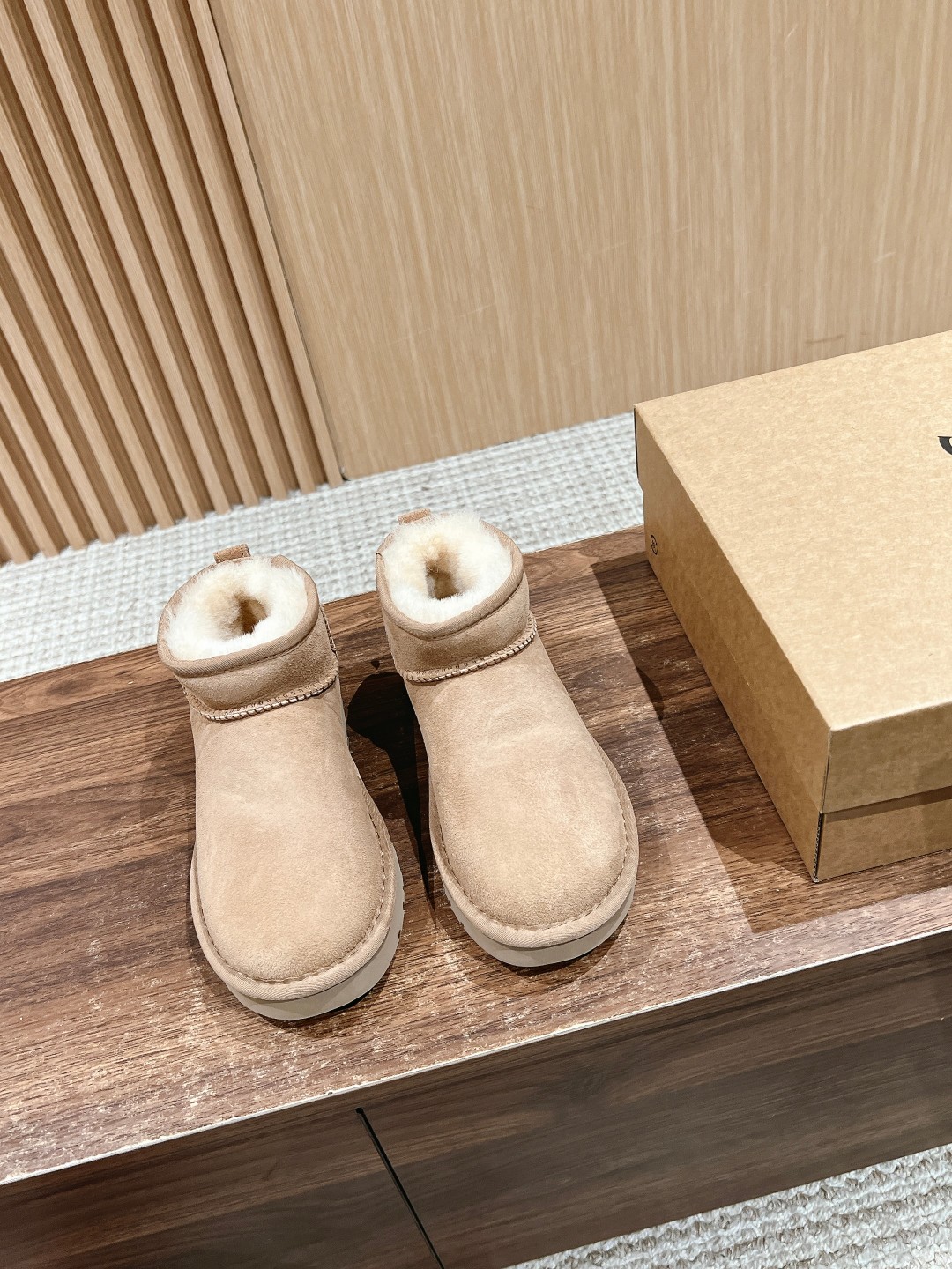 UGG Mini thin sole snow boots. Inspired by Bella and Gigi. Stylish with layered socks for a chic American look. Sizes 35-39.