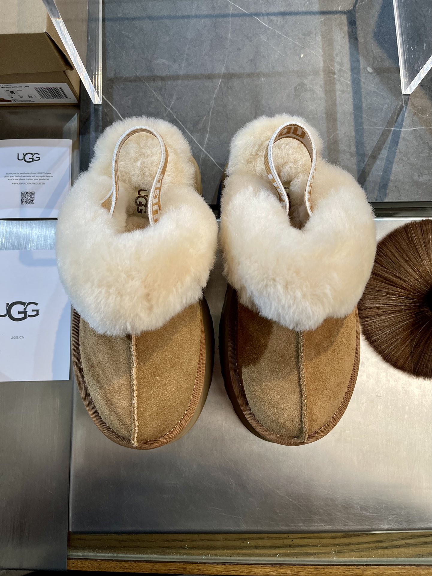UGG 2024 latest back strap platform sandals. Size 35-41. 5cm Eva sole. Genuine sheepskin lining.
