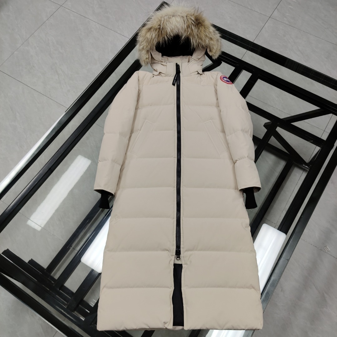 Canada Goose Mystique Parka 22 Women's Long Coat. Top quality, knee-length. Features anti-counterfeit chip, custom embroidery, waterproof fabric, 90% white goose down, wolf fur hood, YKK zippers. Sizes S-XXL.