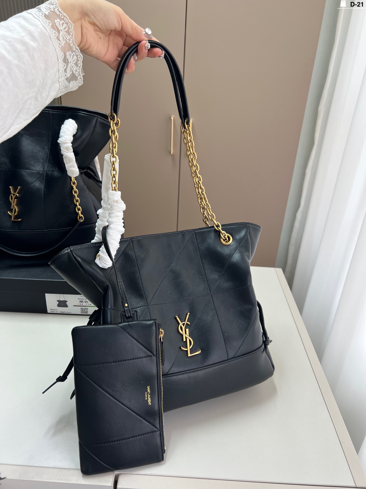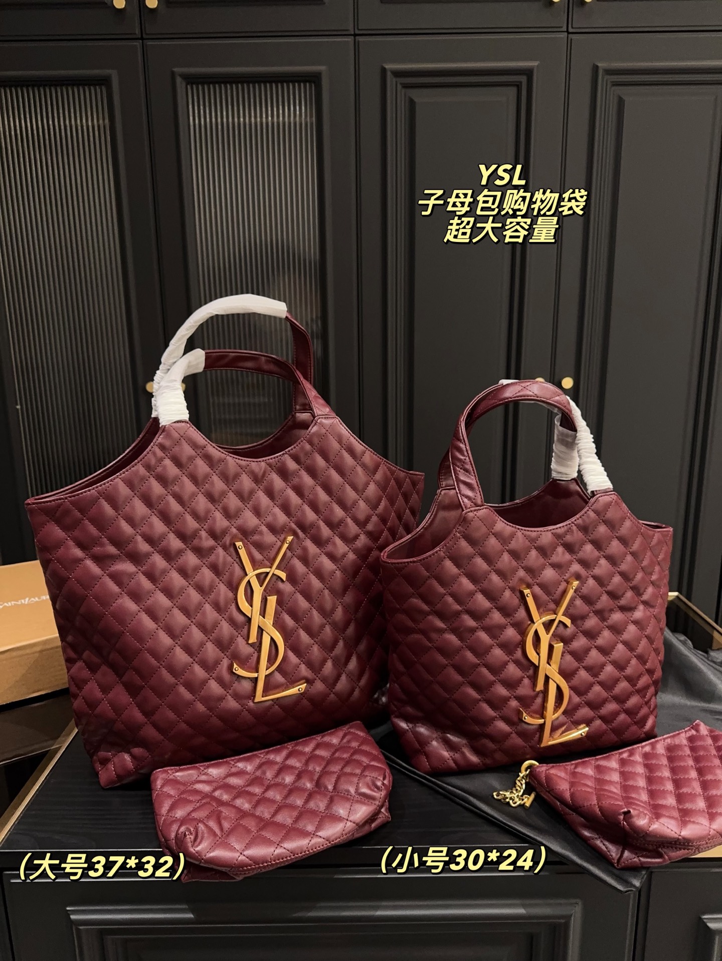 Large size with folding box, dimensions 37.32. Small size with folding box, dimensions 30.24. Saint Laurent YSL mother-daughter tote bag. Popular ICARE tote, "Free, warm, comfortable, elegant, casual." Retro diamond pattern, exquisite craftsmanship. Unisex, large logo, sculptural and artistic style.
