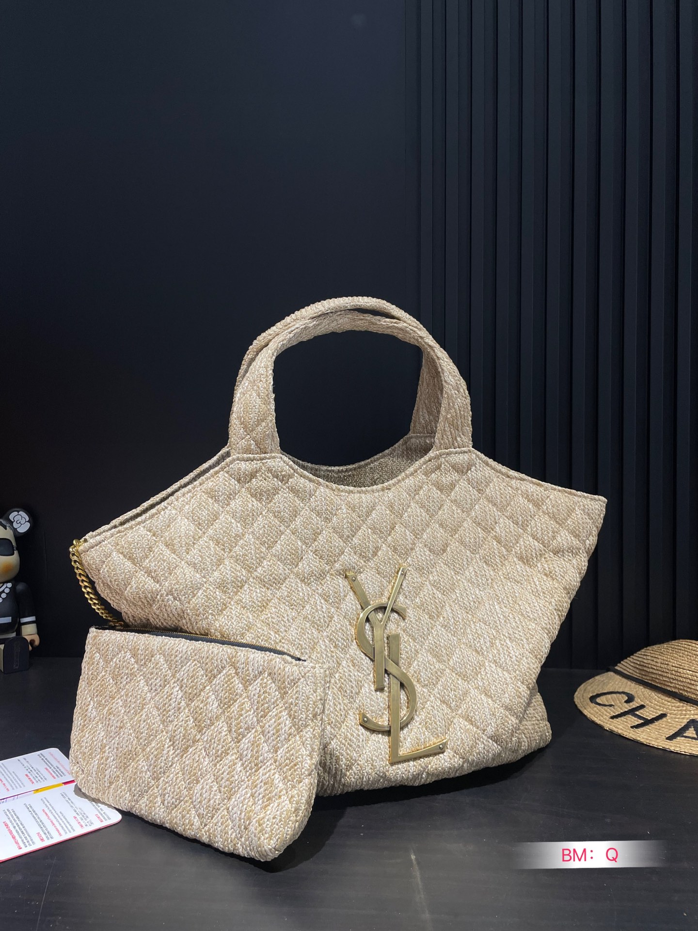 YSL straw hat and bag set, 28cm. Summer essential, highly sought-after. Get yours now!