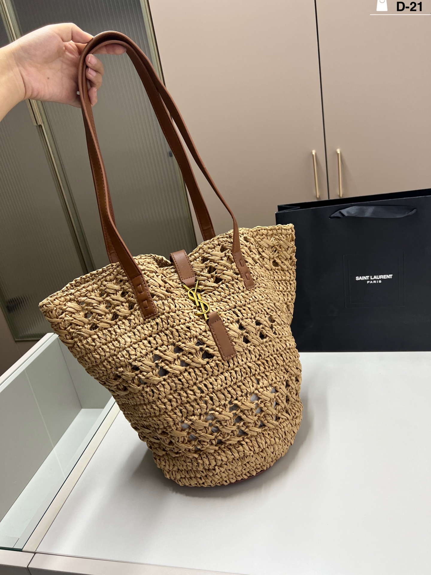 YSL raffia tote bag, summer essential. Versatile for daily and commute use. Size 15x33cm with box.