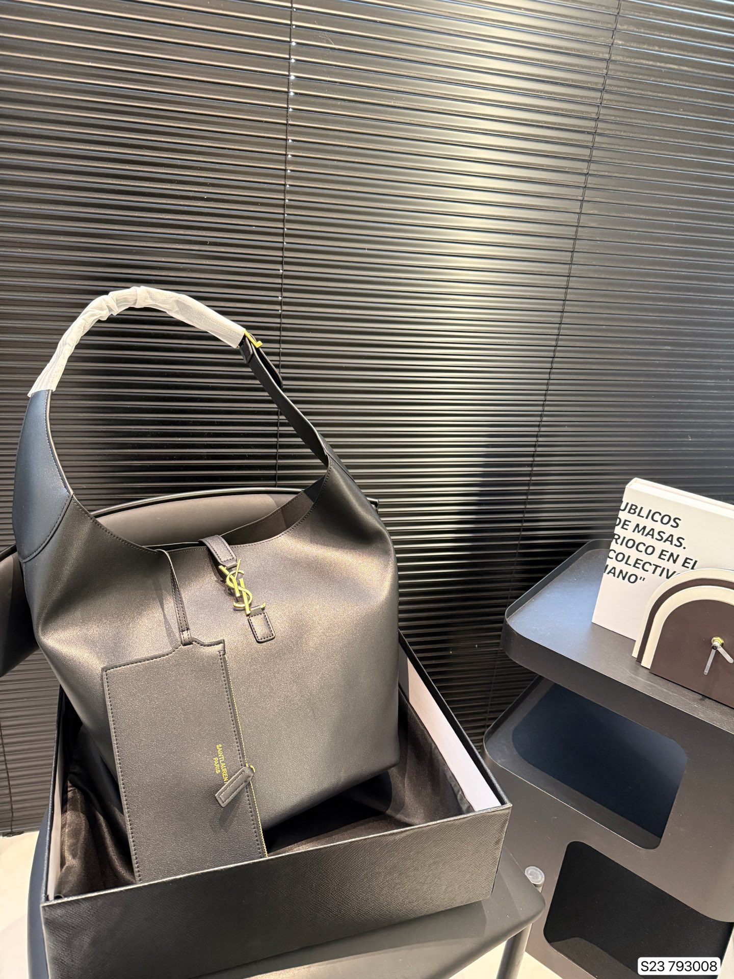 YSL LE 5A 7 HOBO bag with classic hobo style, minimalist design, leather trim, and golden logo. Versatile for casual or city occasions. Autumn-winter essential.