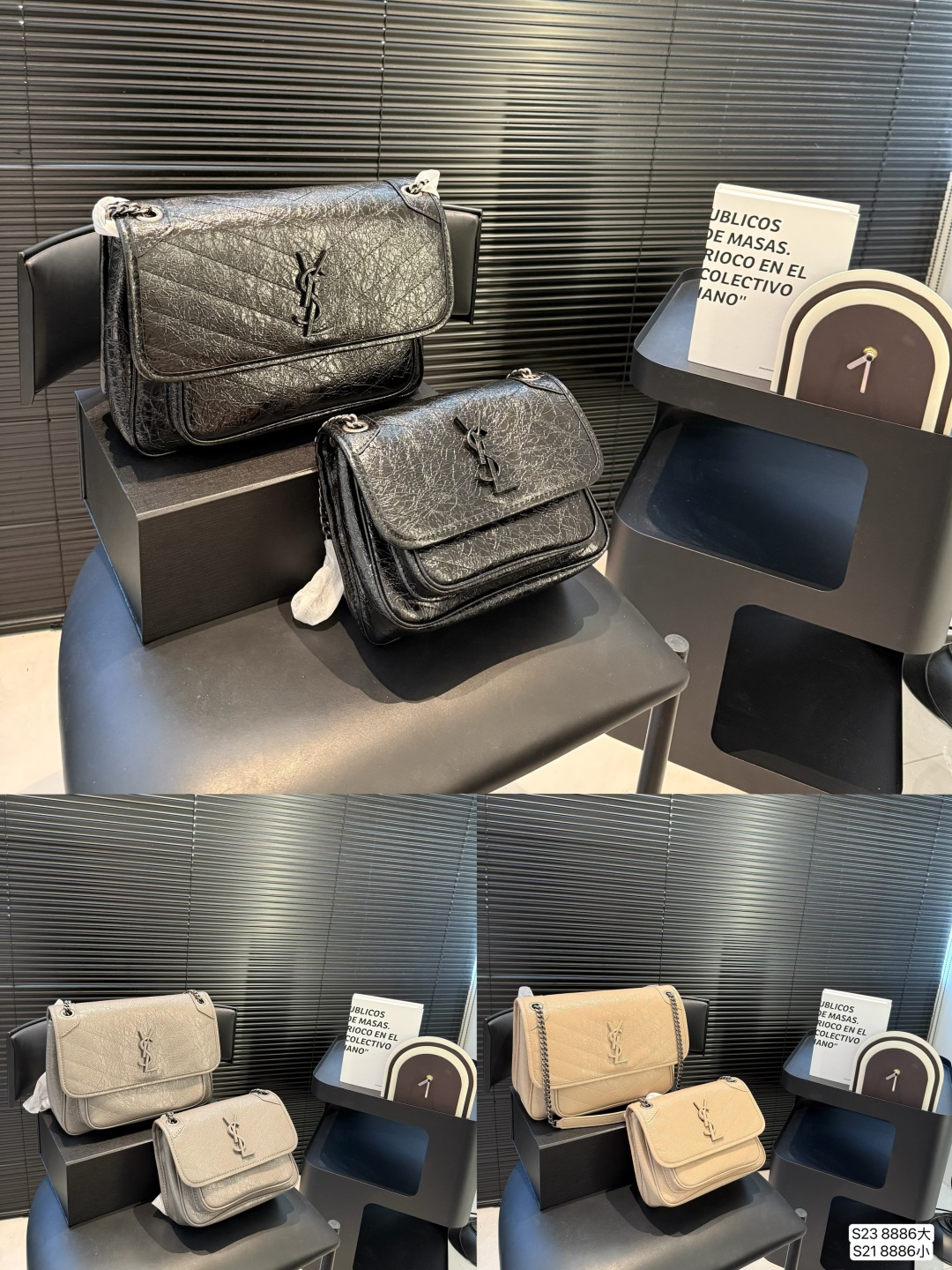 YSL Nikimini crossbody bag, 5 colors, foldable box design. Size: 18x12. Stylish and luxurious.
