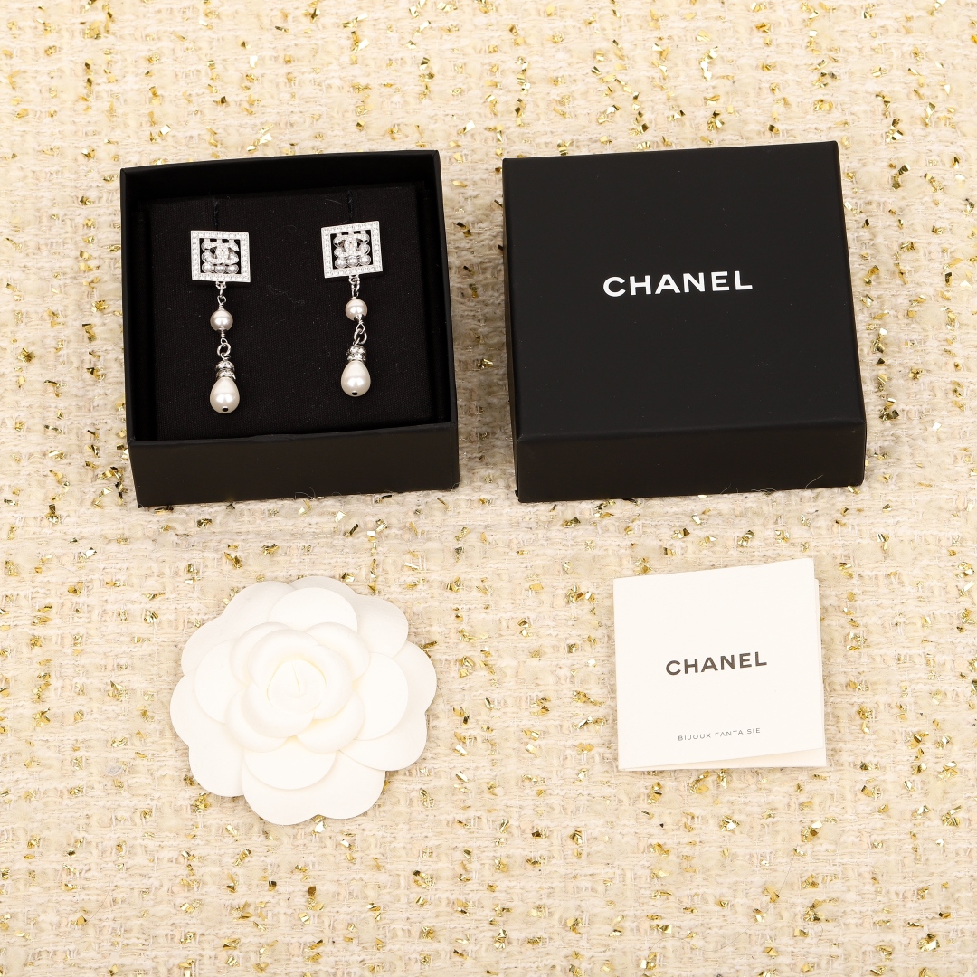 Chanel 24S square hollow pearl earrings, Li Qin style. Heavy craftsmanship, brass material, Swarovski crystals. Stylish and high return rate.
