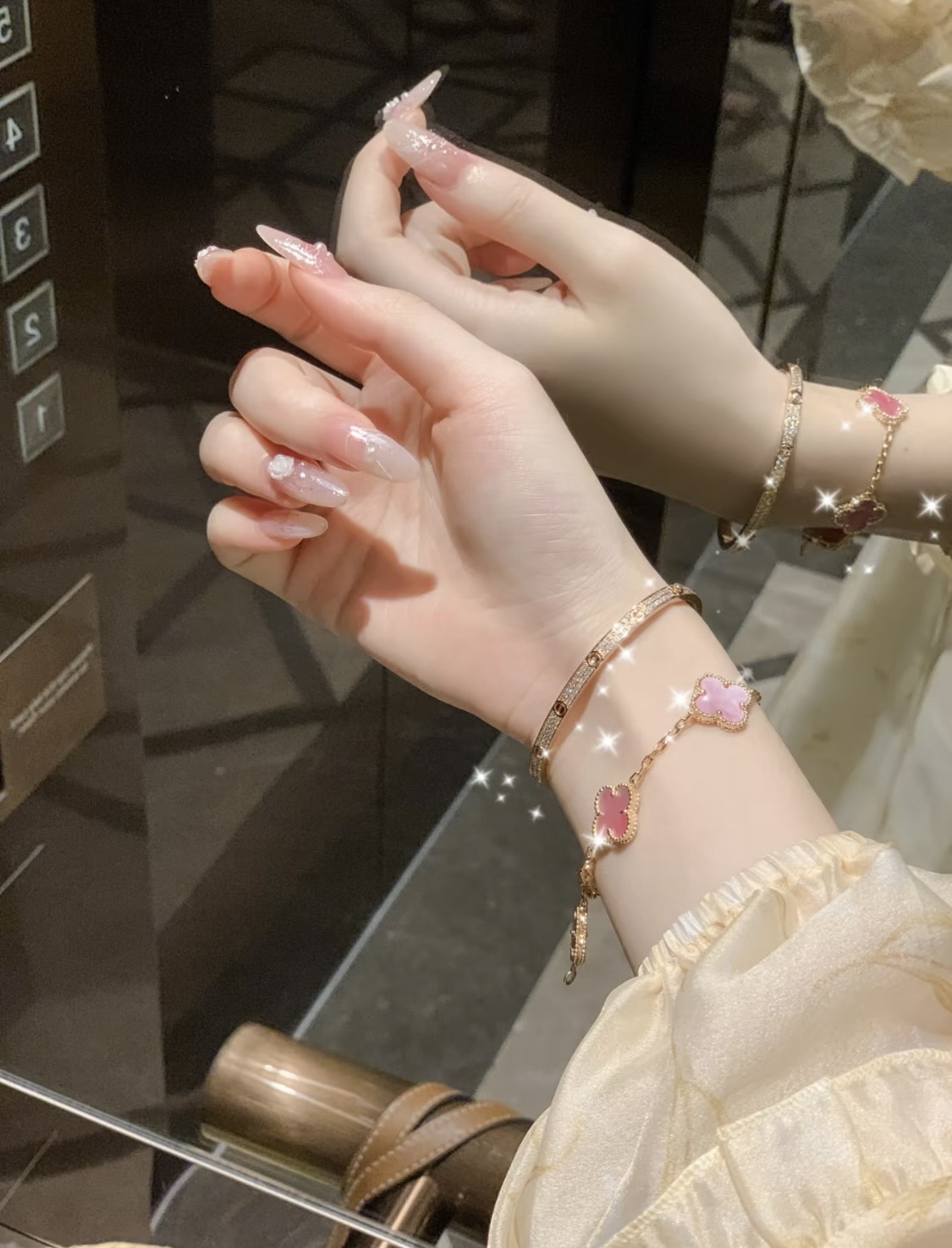 V Gold Material V Family Four-Leaf Clover Five-Flower High-End Engraved Bracelet