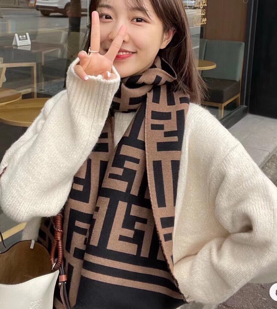 Fendi's popular FF monogram scarf, sold out in boutiques. High-quality wool and silk blend, identical to original. Limited supply, grab it now!