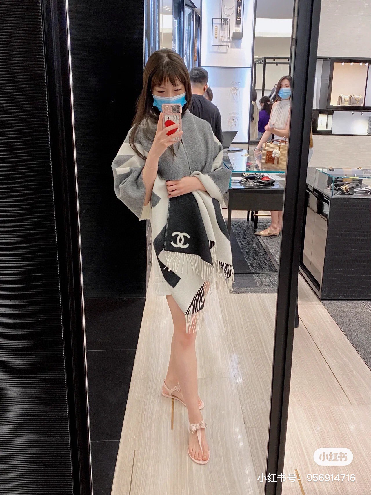 Must-have gradient print scarf, double-sided with CHANEL logo. 70cm*200cm, 60.9% cashmere, 36.1% wool. Two colors.