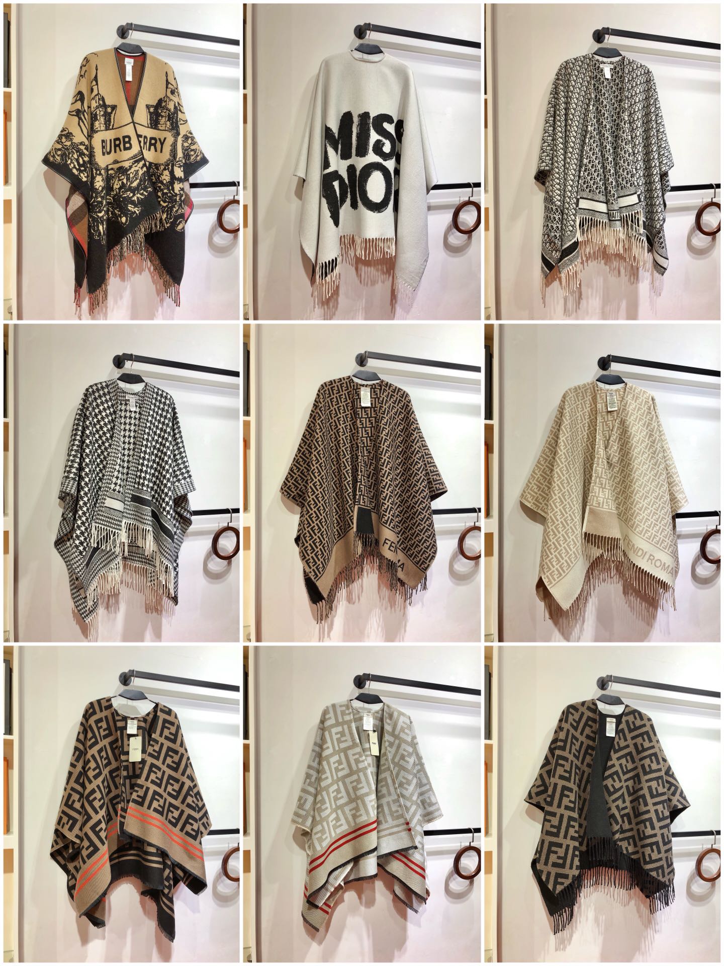 Dior Miss Dior Graffiti wool cape in gray and black, featuring fringe trim and 1967 ready-to-wear tribute design. Made of 100% cashmere, 140x174cm. Warm, elegant, and stylish.