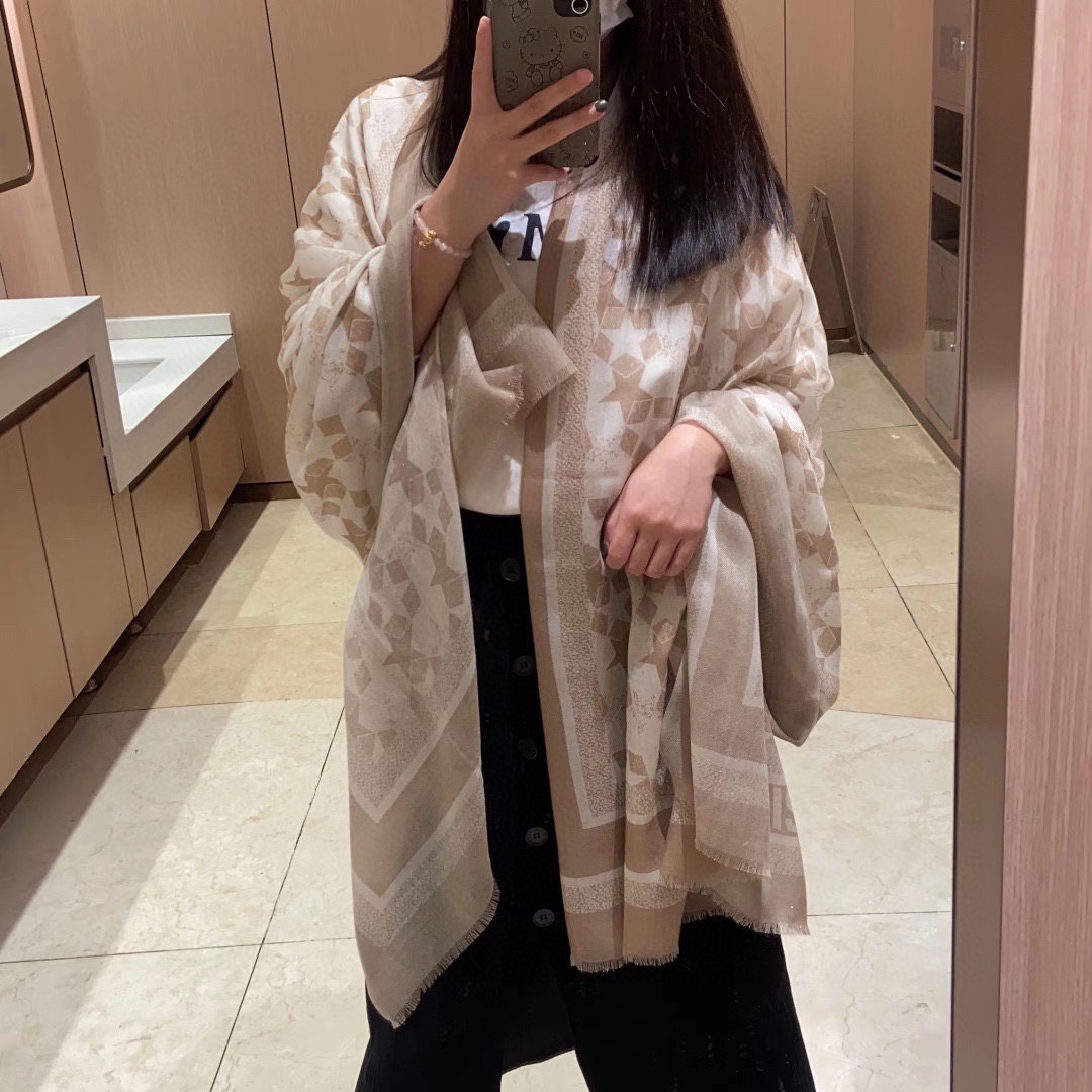 LV scarf in 100% cashmere, classic logo design, 45x180cm. Soft, medium thickness, with original packaging. Celebrity favorite.