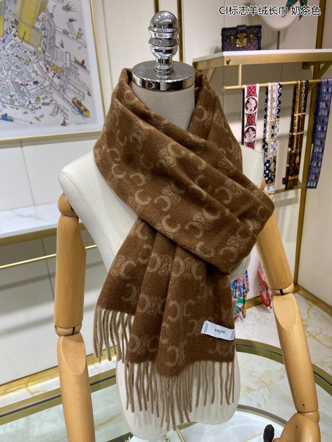 Celine new classic double-faced jacquard cashmere scarf, 38x180cm, retro style, versatile for formal or casual wear.