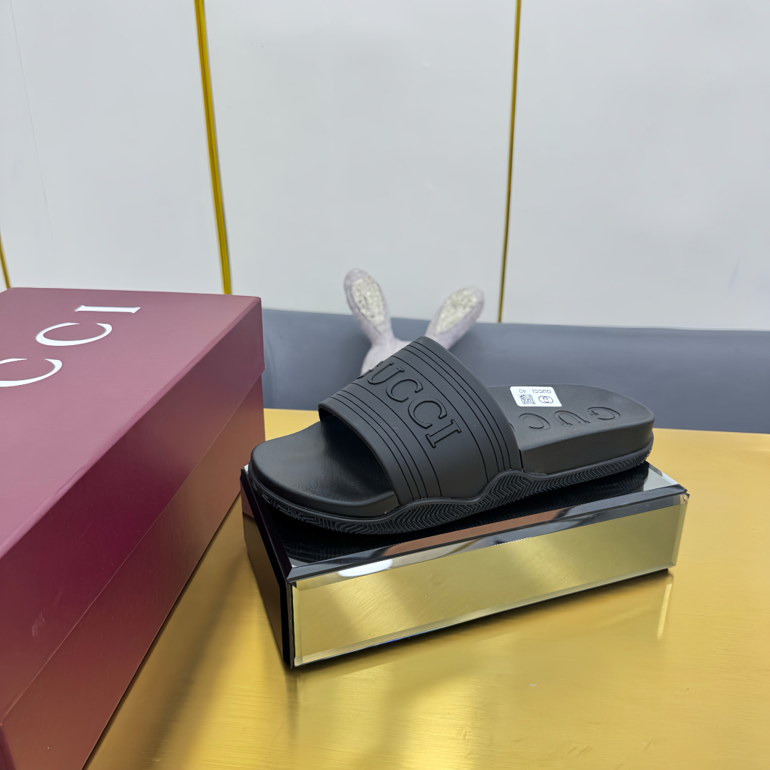 2025 New Gucci Game series unisex sandals. Summer logo rubber slides with thick sole. Modern design, striped webbing, classic brand details. Slip-on, red-green strap. Sizes 36-46. Full original packaging.