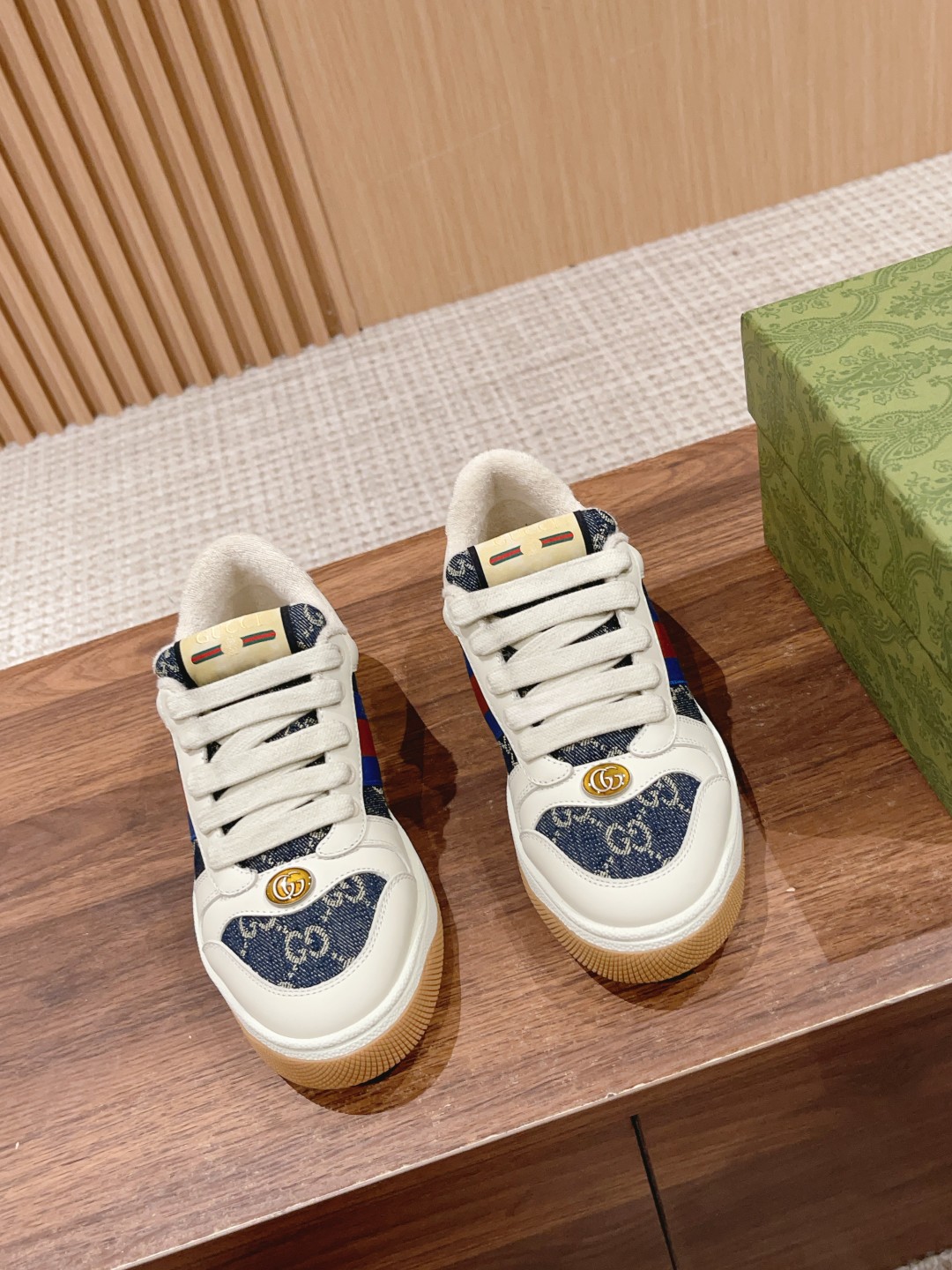Gucci Screener distressed sneakers for men and women, upgraded craftsmanship, authentic materials, sizes 35-45.