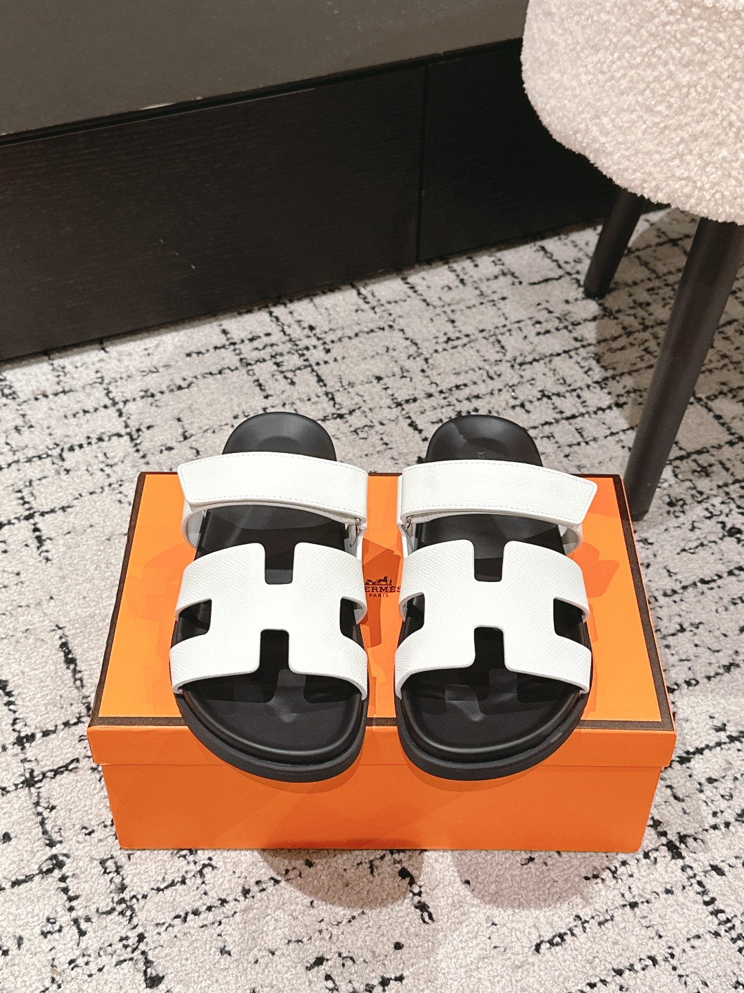 Top version Hermes Oran sandals. Classic H design, versatile for summer outfits. Soft calfskin, comfortable fit. Genuine leather sole. Sizes 35-39.