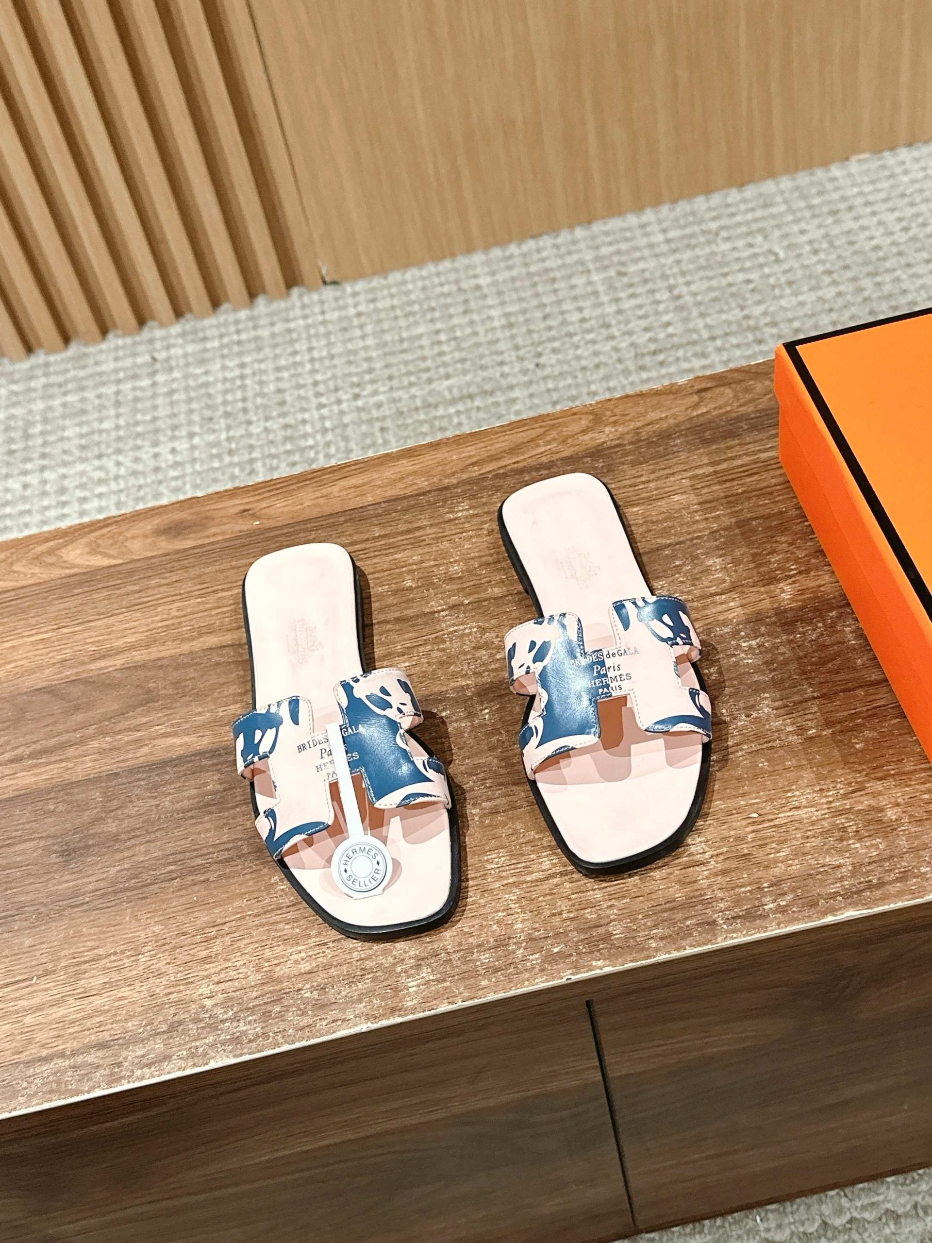 Top version Hermes Oran sandals. Classic H design, versatile for summer outfits. Soft calfskin, comfortable fit. Sizes 35-39.