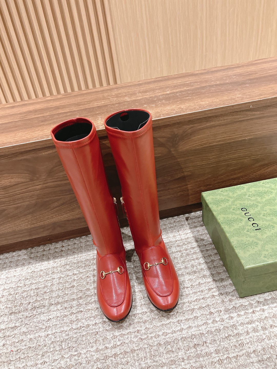 Gucci autumn/winter show elastic boots with horsebit detail. Imported elastic PU upper, handmade toe, full shape. Italian leather sole. Sizes 35-40.