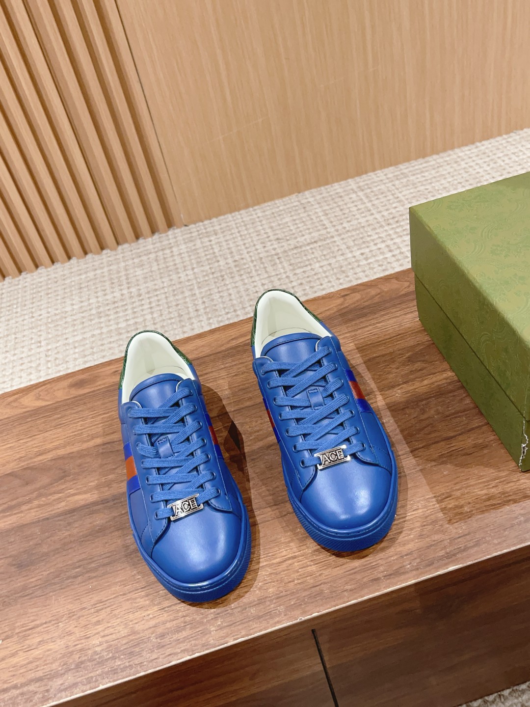 Gucci Ace sneakers, new bee design. Low-top, metallic "ACE" tag, red-green stripe. Genuine leather, 3cm sole. Sizes: Women 35-40, Men 39-45.
