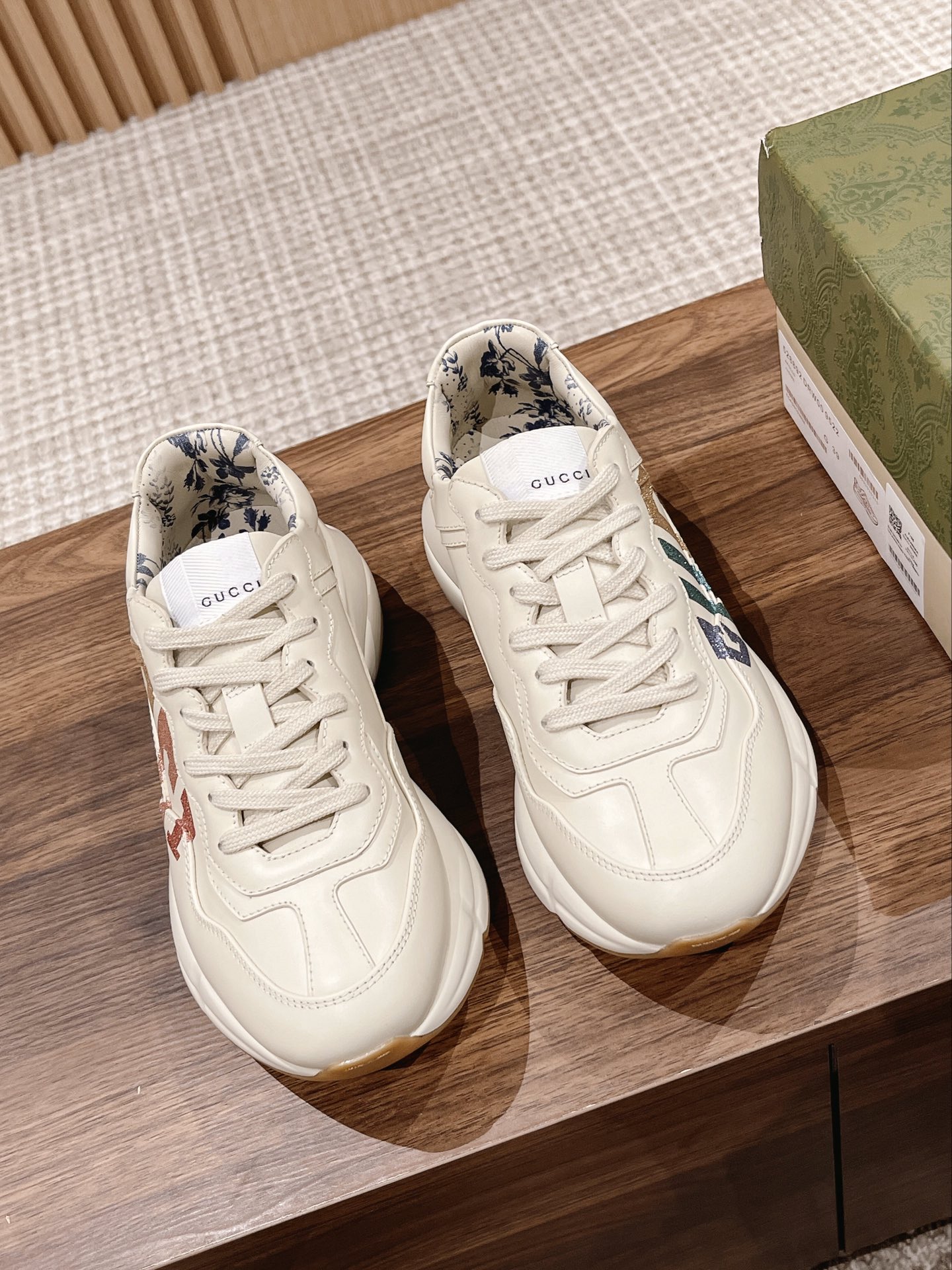 Top Gucci Rhyton sneaker version. Upgraded materials/details, 1:1 replica. Men's 39-44, Women's 35-39. Many colors in stock.