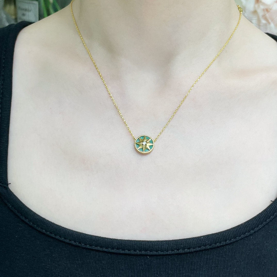 Dior V-gold malachite compass necklace, featuring Victoire de Castellane's reinterpretation of the eight-pointed star with wind rose and intertwined wheat.