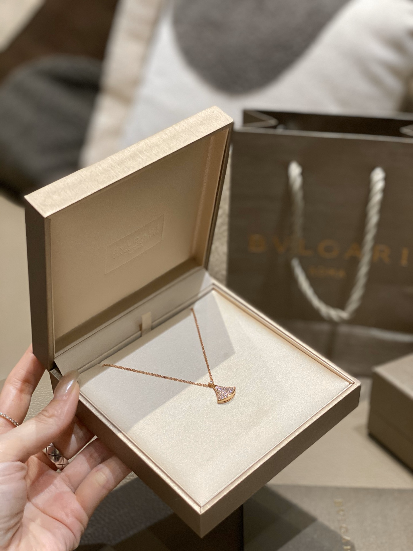 V Gold version Bulgari small dress full diamond necklace, V gold plating, premium custom set, genuine gold texture.